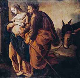 ![]() Bento Coelho da Silveira, detail of 'Mary and Joseph seeking refuge in Bethlehem' (17th century), oil on canvas, Palace of the Dukes of Braganza, Portugal. |